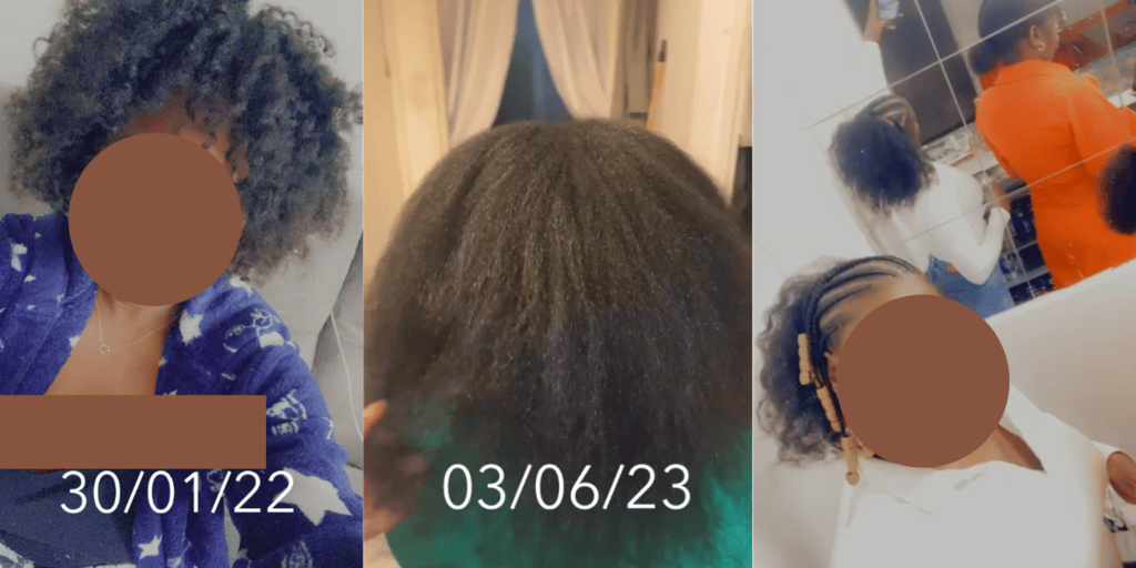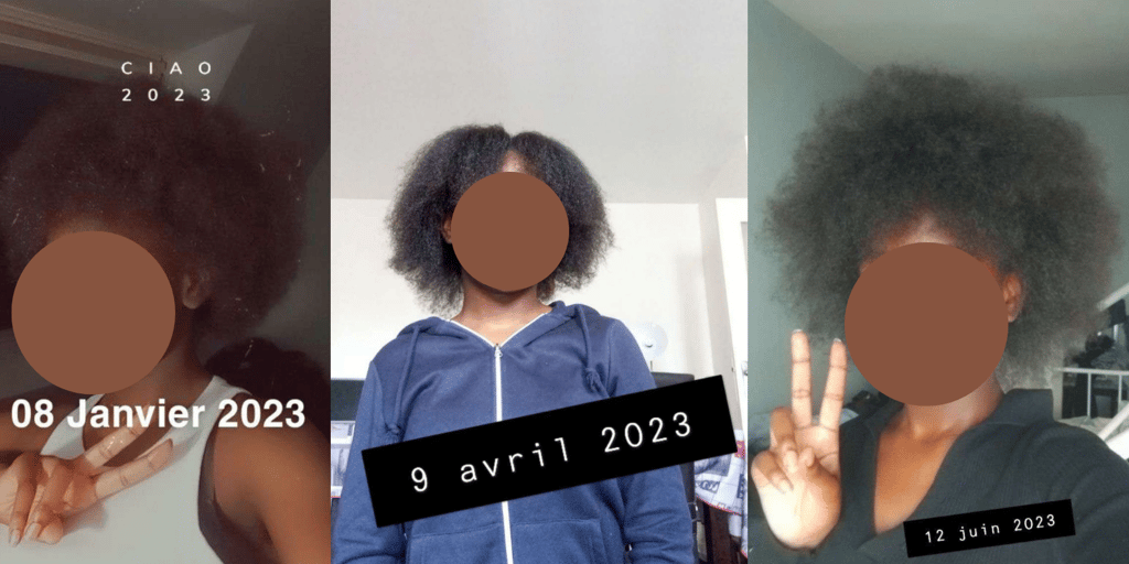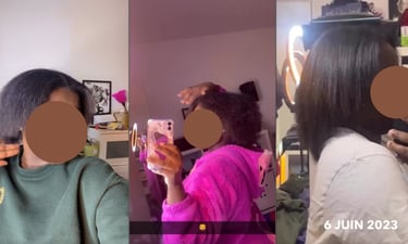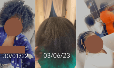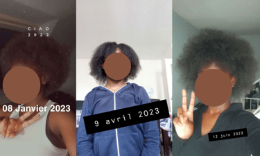 Photos personnels prises par nos clientes elles-mêmes afin de partager l'évolution de leurs cheveux en utilisant un ou plusieurs de nos produits.